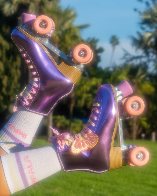 Impala is for everyone – whether you're new to roller skating, mastering inline skates, or skateboarding, it's all about having fun and joining our community of skaters. With a nostalgic throwback to the 70's, 80's, and 90's, Impala is bringing back the yesteryears of skate with both classic quad skates and modern inline skate designs.Impala is driven by a team of passionate skaters, and it's our mission to help support a positive and encouraging community for roller derby enthusiasts and recreational skaters of all levels. Protective gear is designed with both style and safety in mind. We've created custom-designed velcro skate accessories to match your skates in Sky Blue, Pink, and for our Marawa Rose Gold collection.