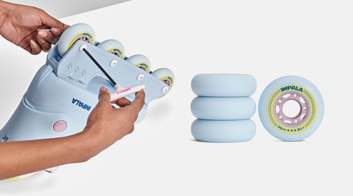 Whether you’re skating by the beach, at the skatepark, or in the streets, wheels wear down over time – so we have created a range of inline skate wheels to keep you rolling! Our four-pack inline skate wheels are specifically designed for our Impala Lightspeed Inline Skates and let you customize them with our fun, signature Sky Blue/Yellow and Pink/Yellow colourways.